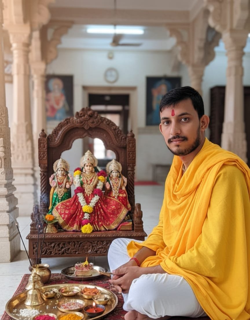 Aacharya Mohit Tripathi is a highly respected and experienced priest, known for providing all types of religious and Pooja Path services with complete devotion and authenticity. With deep knowledge of Vedic scriptures, rituals, and traditional customs, he performs every pooja following proper Vidhis and correct mantra chanting. From daily pooja, Grah Pravesh, Havan, Satyanarayan Katha, Rudrabhishek, Navgraha Shanti, Maha Mrityunjaya Jaap, to special festival and family rituals, all services are conducted with purity and spiritual discipline. Aacharya Ji also offers guidance for spiritual growth, peace, prosperity, and removal of negative energies, ensuring positive results and divine blessings for devotees. His calm nature, dedication, and sincere approach have earned him the trust and faith of many families.